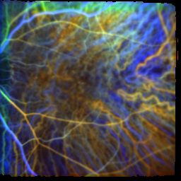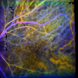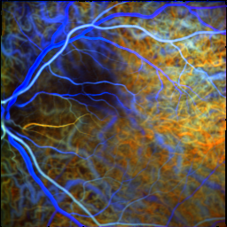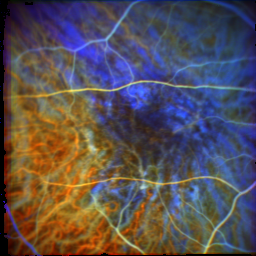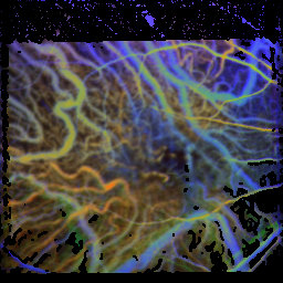 Three of these four parameters were visualized in the color image representation — representing the influx behaviour information. Warm colors (red, orange, yellow) indicate