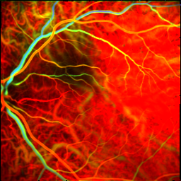 On this page, the colors in the images are normalized to the respective influx behaviour of untreated patients with AMD,